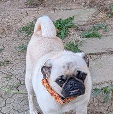 Bonchi is an 8 year old female Pug. She is an owner surrender. Bonchi gets along with other dogs and cats. She is very playful for her age, can do stairs and chairs:-) She is spayed and up to date on shots and is housetrained. Her adoption fee is $150.
