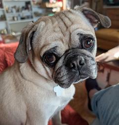 Meet Freida a 6 year old female Pug. Freida is a lovely girl and her foster mom says she is doing well with housetraining but will use a pee pad. She is such a sweet girl, very loving and active. Freida is up to date on vaccines, spayed, has had a dental cleaning and is microchipped. She weighs in at about 18 pounds. Freida's adoption fee is $300. Medical hold in need of soft palette surgery