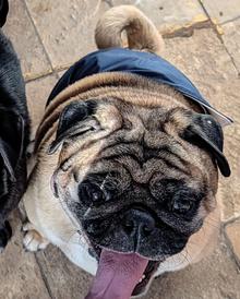 Meet Baxter a 6 year old male Pug. Baxter is neutered and up to date on shots. We are not sure if he is house trained, we have dog doors but he will come with a belly band for training. Buster gets along with other dogs and cats. He does well with kids. Baxter is a big boy weighing about 22 pounds. Baxter's adoption fee is $175 Adopted